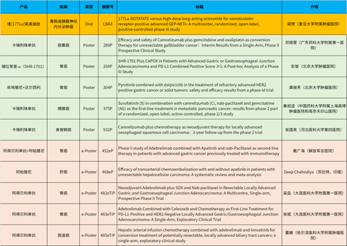 在消化系统肿瘤领域,永利娱乐城产品相关研究共入选1项最新突破性摘要(LBA)、5项壁报和5项电子壁报,共11项研究。其中阿得贝利单抗入选4项研究、卡瑞利珠单抗入选3项研究。